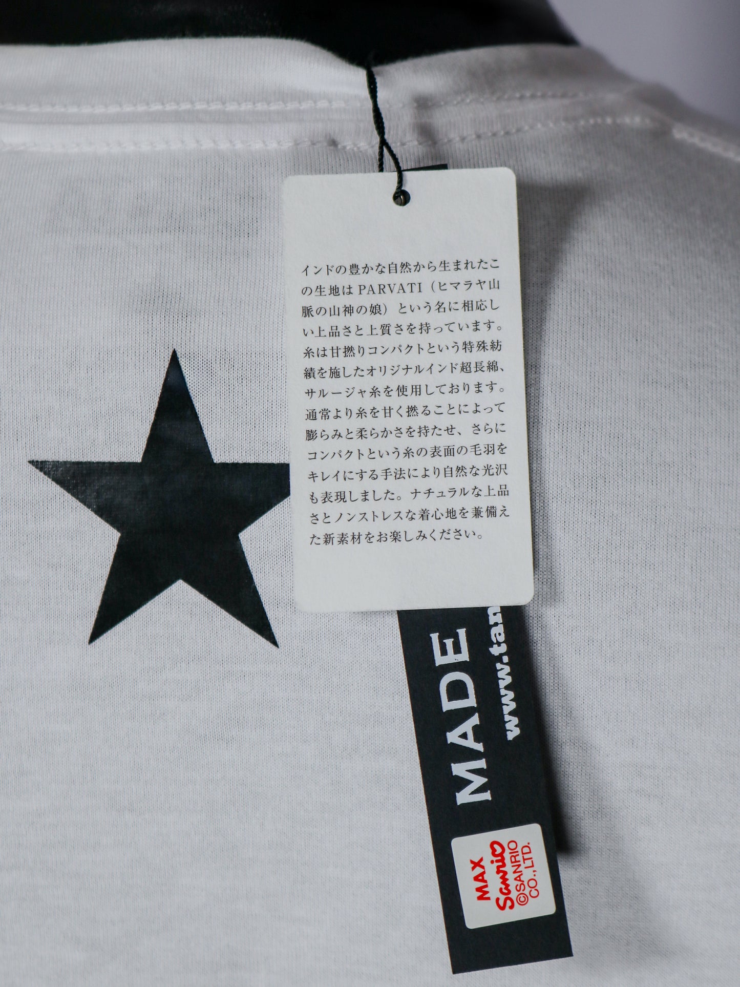 ブランドアイコン「チャッピー」が、日本の可愛いアイコンハローキティーがモノグラムになってるSurf Shortsを履いてる可愛くて面白いデザイン。肩とバックの★プリントもポイント。デザインのインパクトだけでなく、伸縮性があり肌触りの良い高級な100%コットン素材(PARVATI®)を使用した着心地が抜群、Vネックの可愛いTシャツ。